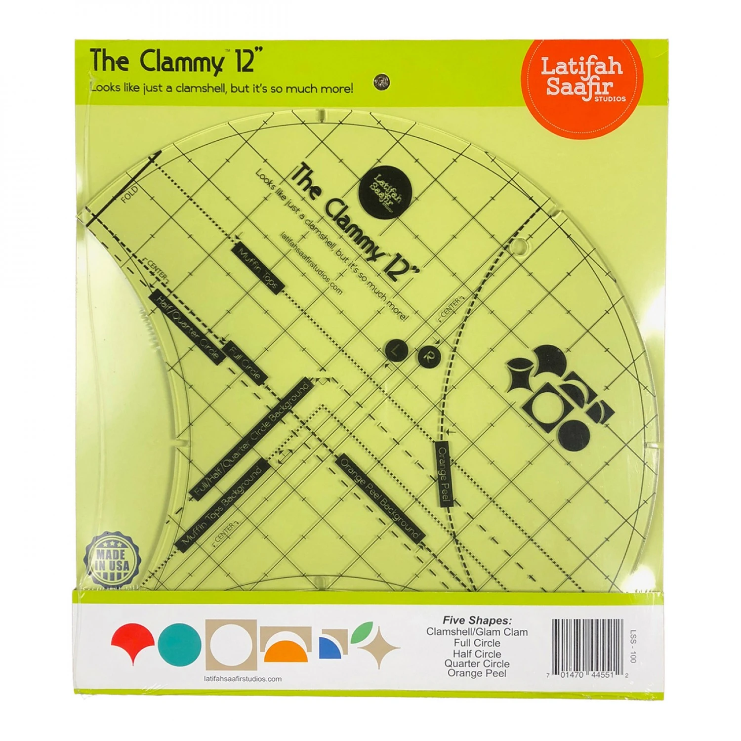 The Clammy 12in is an innovative multi function template that can be used to cut 12in clamshells, circles, half circles, quarter circles, and orange peel shapes! This is the “new and improved” Clammy 12in which now includes registration marks right on the template for easy transfer to your shapes.