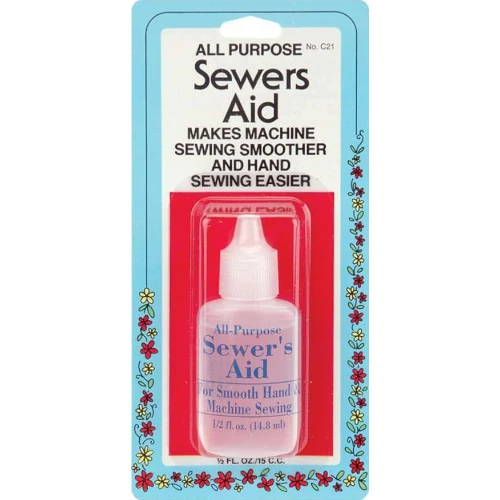 Sewer’s Aid applied sparingly to thread and sewing tools makes machine and hand sewing easier. A drop on a machine needle helps reduce heat friction when sewing heavy or sheer materials. Try using it to ease stiff zips.