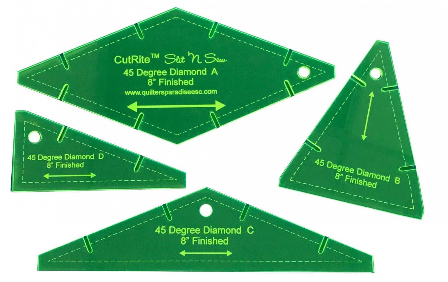 Our patent-pending Slit ‘N SewTM method represents a truly revolutionary improvement by allowing curved piecing to be done quickly and easily each and every time! Using the CutRiteTM Slit ‘N Sew templates, simply use a rotary cutter to make small cuts that are precisely located on the templates. Then proceeding a slit at a time, line up the next slit from each piece that is being pieced together and sew to that slit. The result? A perfect curved piecing job in no time!