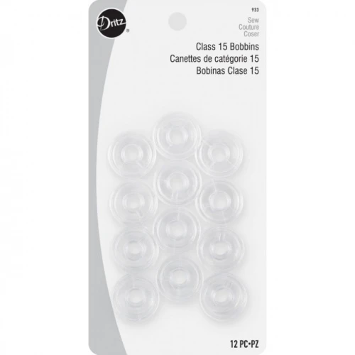 Organize your sewing threads neatly with the Dritz Class 15 Reusable Bobbins. This pack contains 12 Class 15 bobbins that are designed to fit in machines such as Singer, Baby Lock, Brother, Riccar, Simplicity and White. Always consult your sewing manual to determine the proper type of bobbin needed for your machine, and use only the same type (plastic or metal) of bobbin that came with your machine.
