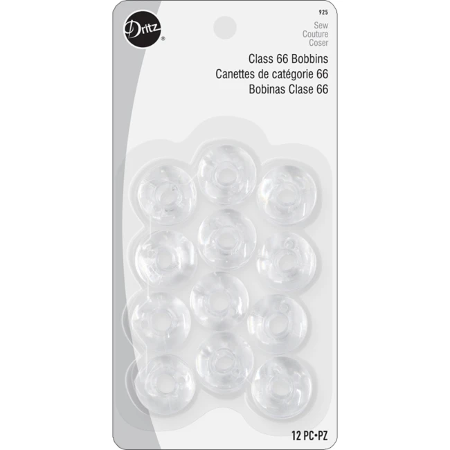 Organize your sewing threads neatly with the Dritz Class 66 Reusable Bobbins. This pack contains 12 Class 66 bobbins that are designed to fit in machines such as Singer, Baby Lock, Brother and Simplicity. Always consult your sewing manual to determine the proper type of bobbin needed for your machine, and use only the same type (plastic or metal) of bobbin that came with your machine.