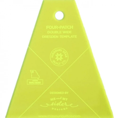 Make pieced Dresdens the fun, fast, and easy way! From Me and My Sister Designs for Missouri Star, the Four-Patch Double Wide Dresden Ruler is twice as wide as the traditional version and has markings so you can easily line up four-patch blocks to create diamond-pieced blades. Cut your sewing time in half by using only 10 wedges versus the original 20. With no hand appliqué in the center and no raw edges, a secondary star pattern is created in the center.