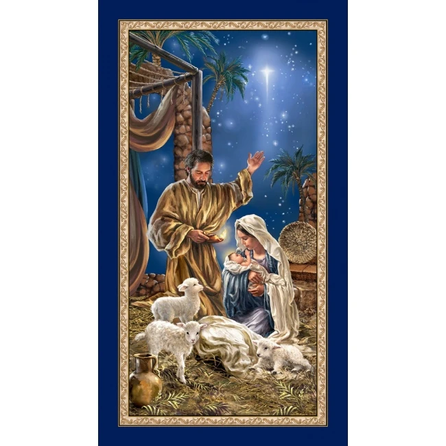 A nativity scene featuring Mary, Joseph and baby Jesus in the barn