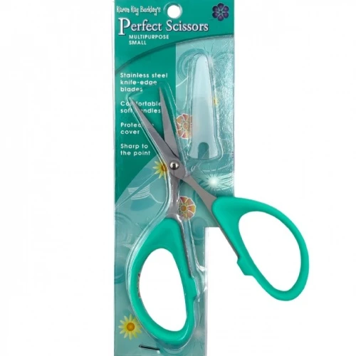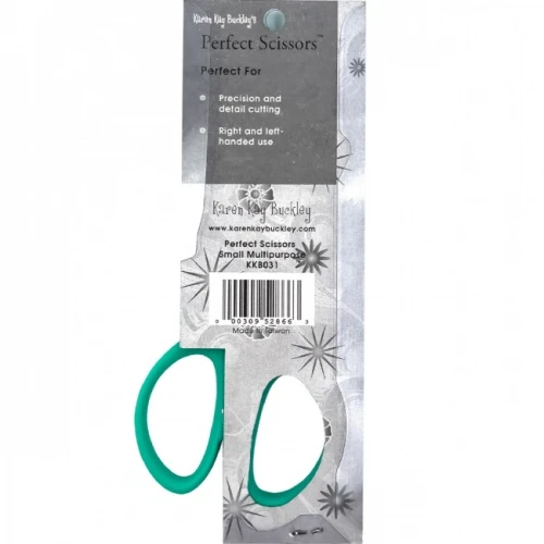 The third pair of straight blade scissors. I’ve had lots of requests for this type of scissors but with a smaller blade. They are great for cutting templates (freezer paper, template plastic), fabric and fabric with fusible stabilizers. The blades are stainless steel. The handles have the same soft, ergonomic grip as our other Perfect Scissorsâ„¢. They cut sharp to the point and come with a plastic protective cover. Great for both right and left hand cutting.