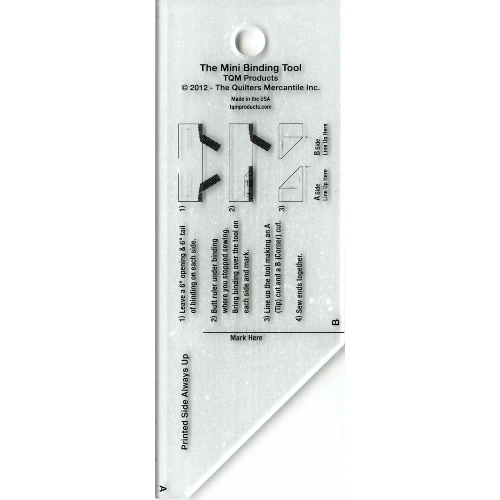 The Mini Binding tool is a must have for smaller projects such as place mats, pot holders and mini quilts. Works best with a 2in binding. Also can be used to make a french braid table runner or quilt. 2-1/2in x 5-1/4Â