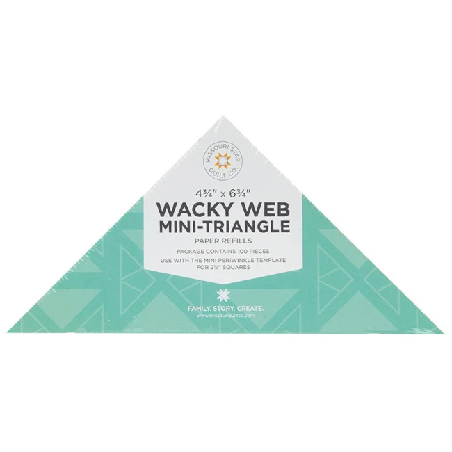 Keep your paper piecing stock full with these Wacky Web Mini-Triangle Paper Refills! This pack features 100 pieces, so you won’t run out so quickly. You can use this with the Mini Periwinkle Template and 2.5″ squares!