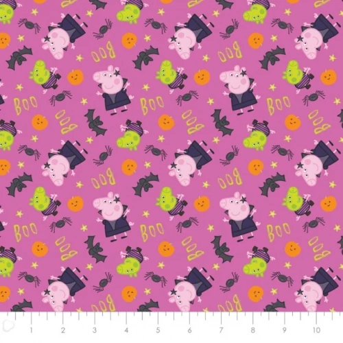 Peppa Pig Witchy Halloween Fabric in pink