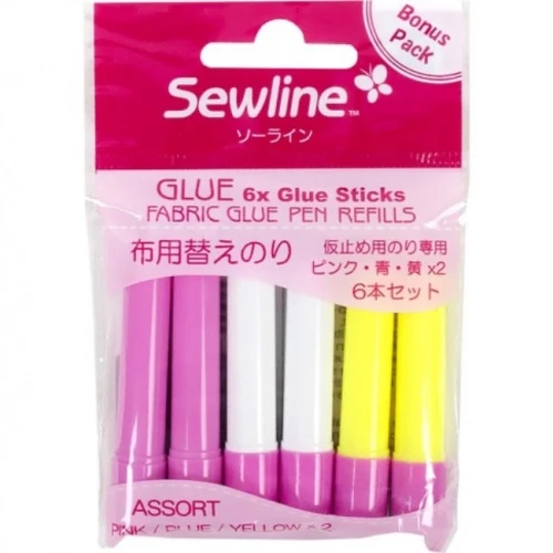 Sewline glue pen Refil pack of 6. 2Â pink, 2 Blue, 2 Yellow