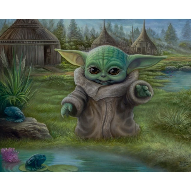 A large fabric panel featuring baby yoda, the child