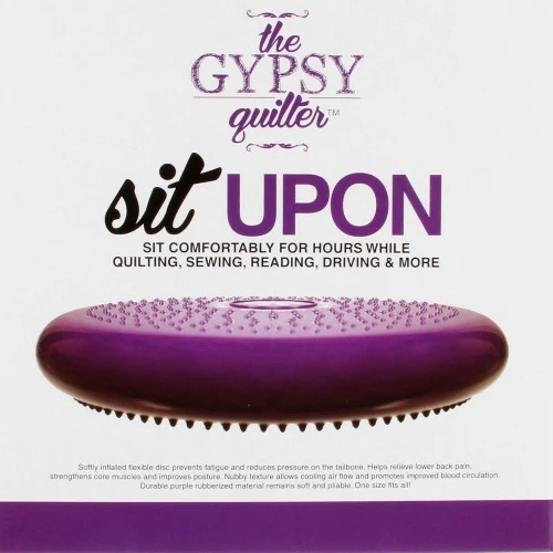 Damaged Box – Sit comfortably for hours while quilting, sewing, reading, driving, and more. The Gypsy Sit Upon Can be used on hard or soft chairs, recliners, car seats or anywhere you sit for an extended period of time. This softly inflated flexible disc acts like an exercise ball – preventing fatigue and reducing pressure on the tailbone. Relieve lower back pain, strengthen your core muscles, and improve your posture the easy way. The nubby texture allows cool air flow and promotes improved blood circulation. Durable purple rubberized material remains soft and pliable. One size fits all!